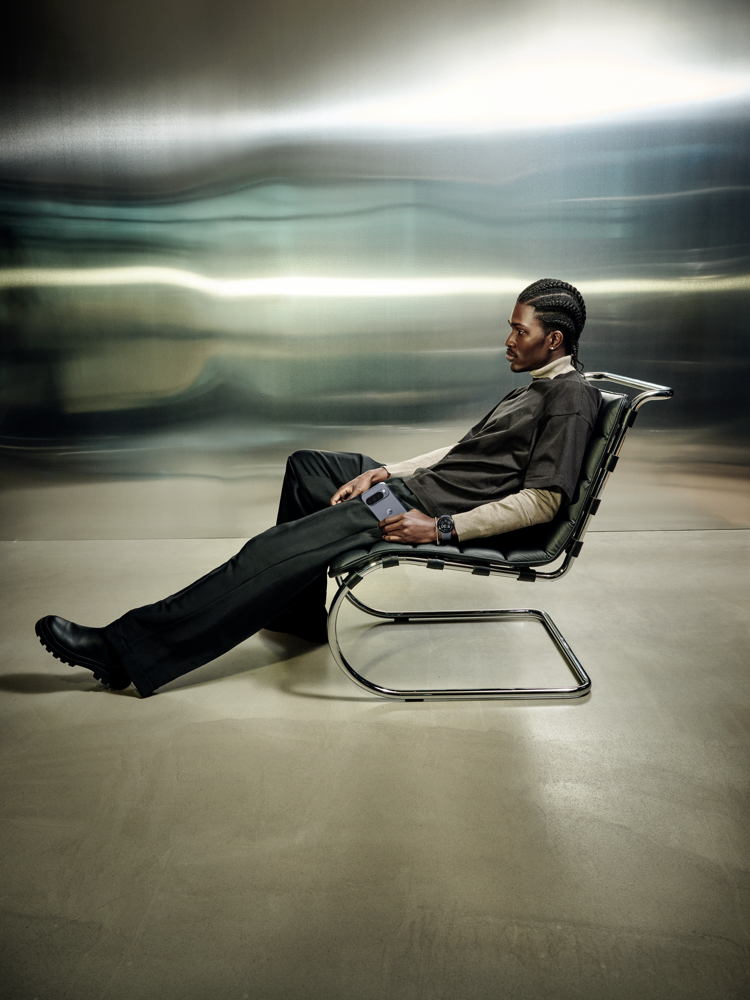 The Obsidian Pixel Watch 4, 41mm, with Crafted band in Black.