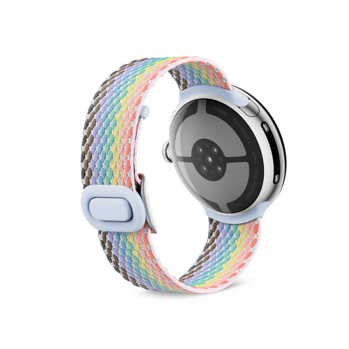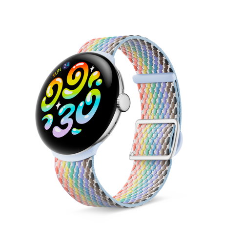 The Silver Pixel Watch 4, 41mm, with Woven band in Pride.